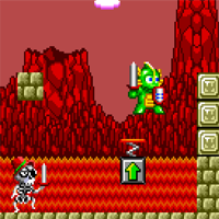 This game is made by Hudson in the year 1990. This is a jump'n'run-game. It's a follower of the legendary Wonderboy. With the stick you move, with the one button you jump, with the other you hit with the sword. In the begin you must find the right way in the castle. Later you play not Wonderboy, you play a dragon. There are up-fields which makes you jump very high. You have an energy-bar.